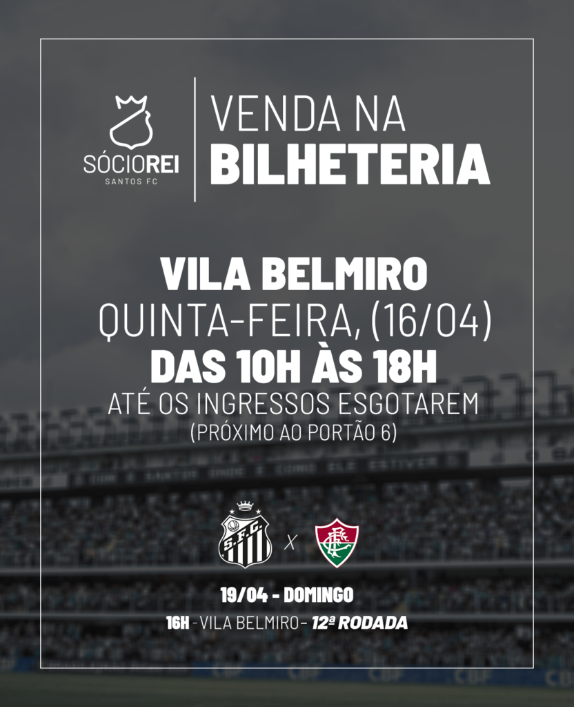 O Santos FC informa que a venda de ingressos para o jogo contra o Fluminense, na Vila Belmiro, começará nesta quarta-feira, dia 15. A partida, válida pelo Campeonato Brasileiro, será realizada no domingo, dia 19 de abril, às 16h. A Lei Estadual nº 18.159/2025, de São Paulo, garante gratuidade em eventos esportivos para crianças de […]