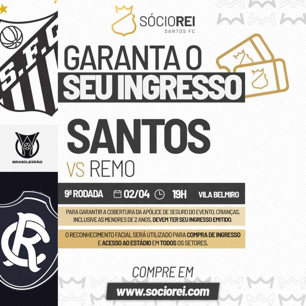 O Santos FC informa que a venda de ingressos para o jogo contra o Remo, na Vila Belmiro, começará nesta quinta-feira, dia 26. A partida, válida pelo Campeonato Brasileiro, será realizada na quinta-feira, dia 2 de abril, às 19h. A Lei Estadual nº 18.159/2025, de São Paulo, garante gratuidade em eventos esportivos para crianças de […]