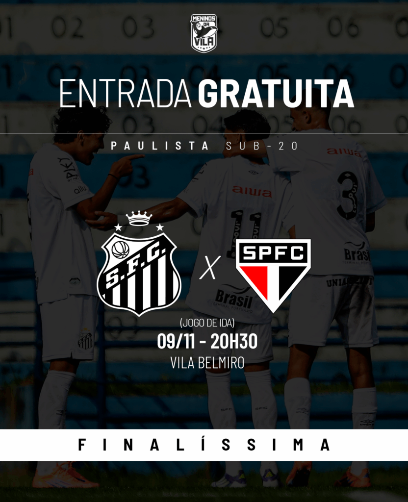 A equipe Sub-20 do Santos FC está na final do Campeonato Paulista da categoria. A primeira partida, o clássico com o São Paulo, será no próximo domingo (9), às 20h30, na Vila Belmiro e a entrada será gratuita, com torcida única do Peixe. Os portões 1, 2, 7,8, 13 e 14 serão abertos às 19h30. […]