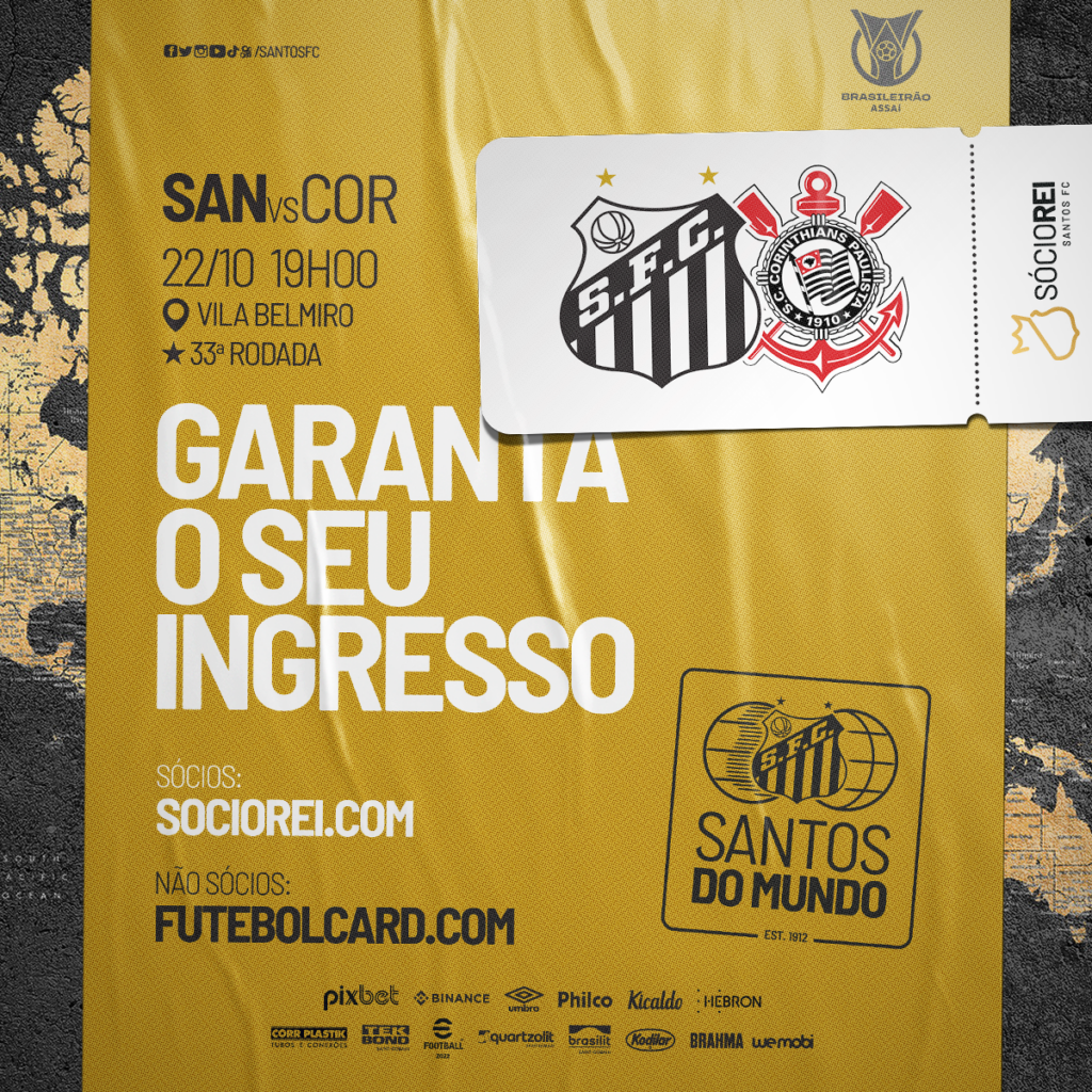 O Santos FC informa que a venda de ingressos para Santos FC x Corinthians na Vila Belmiro, começará nesta segunda-feira, dia 17. A partida, válida pela 33ª rodada do Campeonato Brasileiro, será realizada no sábado, dia 22 de outubro, às 19h00. A venda dos ingressos ocorrerá apenas de forma on-line até sexta-feira, dia 21. No […]