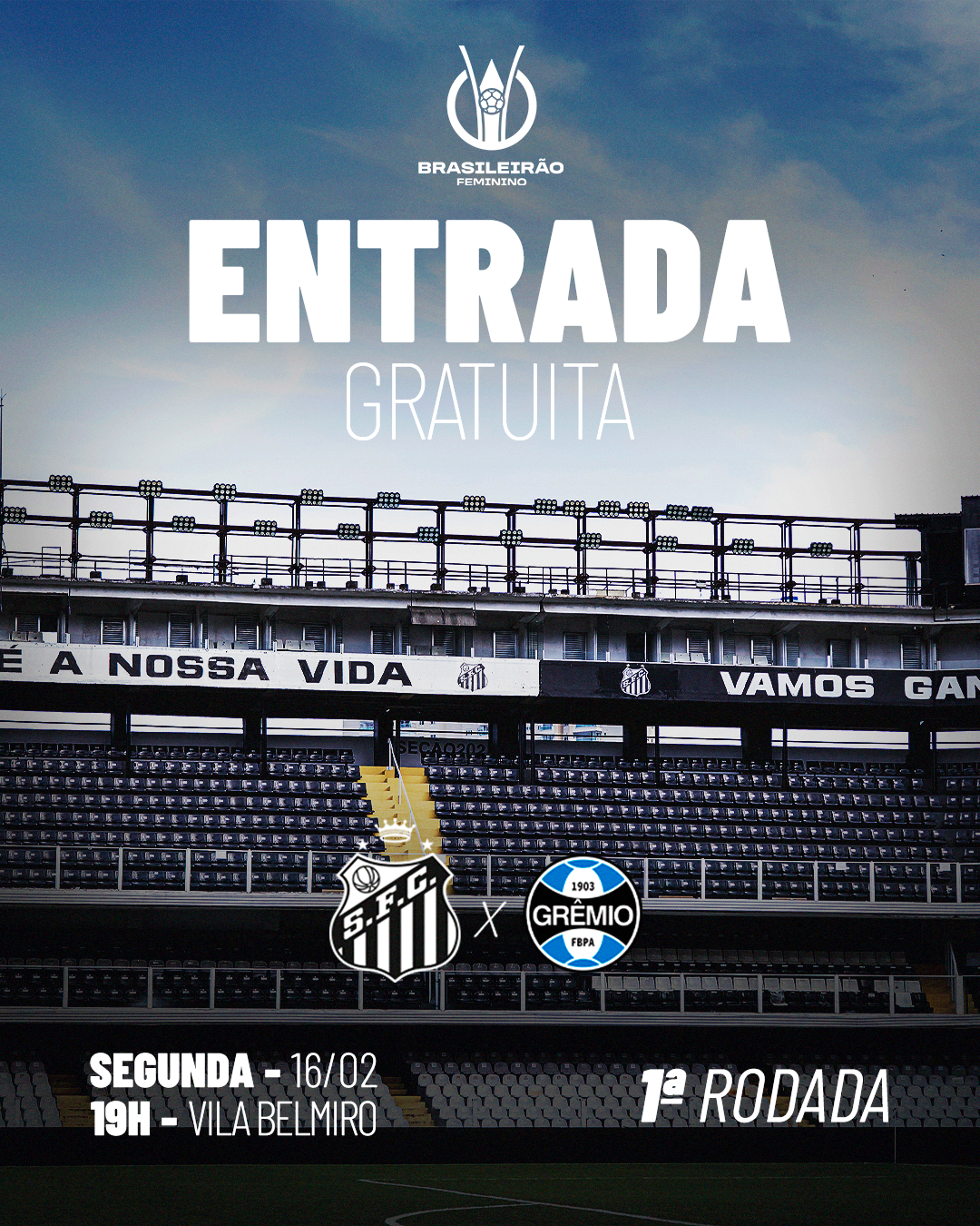 As Sereias da Vila terão pela frente o Grêmio, nesta segunda-feira (16), às 19 horas, na estreia do Campeonato Brasileiro Feminino, na Vila Belmiro. A entrada será gratuita.