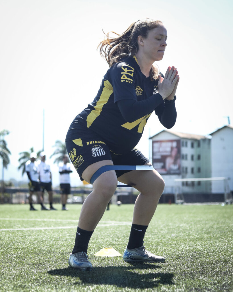 A intensidade dos treinamentos foi diminuindo ao longo da gestação. Ela foi orientada a ter, no máximo, 150 batimentos cardíacos por minuto, que foram monitorados em tempo real tanto pela atleta como pela preparadora física. Todos os treinamentos realizados pela maior artilheira das Sereias da Vila foram controlados e autorizados por uma equipe médica, além do acompanhamento dos profissionais do Santos FC.
