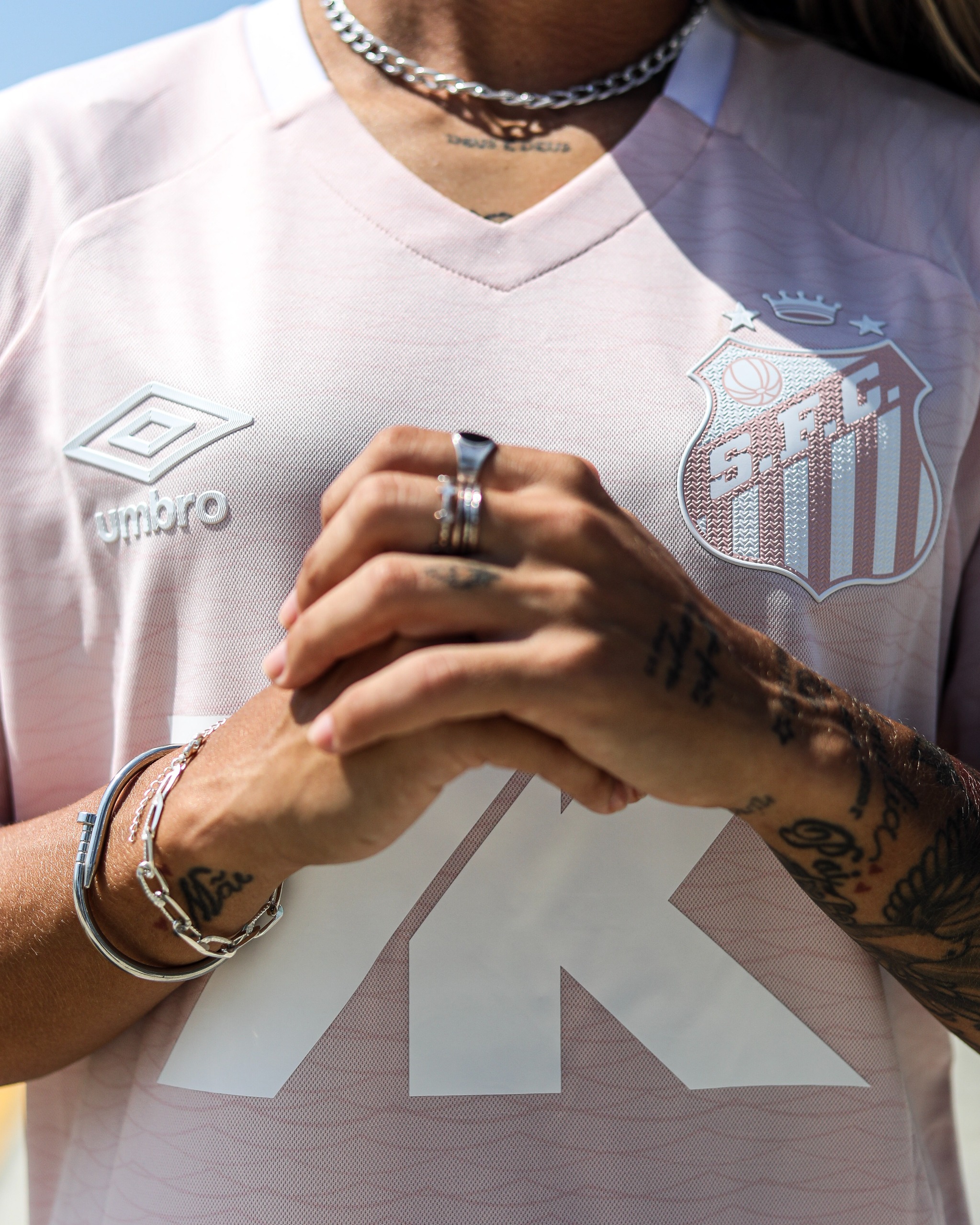 O Santos FC e a Umbro, fornecedora oficial de material esportivo do Clube, lançam, nesta quarta-feira (1), a camisa em homenagem à campanha de Outubro Rosa. A iniciativa é realizada em parceria com a FEMAMA (Federação Brasileira de Instituições Filantrópicas de Apoio à Saúde da Mama), reforçando o compromisso com a prevenção e controle do câncer de mama no Brasil. Parte do valor arrecadado com as vendas será destinado à FEMAMA, que atua nacionalmente com o objetivo de ampliar o acesso das mulheres ao diagnóstico precoce e tratamento de qualidade de forma ágil.