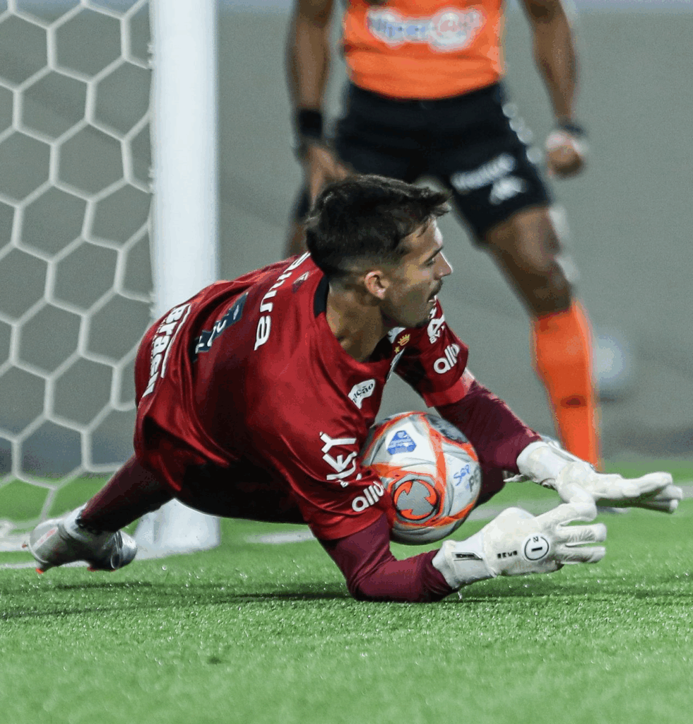 O goleiro Rodrigo Falcão fez uma linda defesa, logo aos 11 minutos. Após bate e rebate dentro da área, ele defendeu chute à queima-roupa, mostrando todo seu reflexo e agilidade na impulsão.