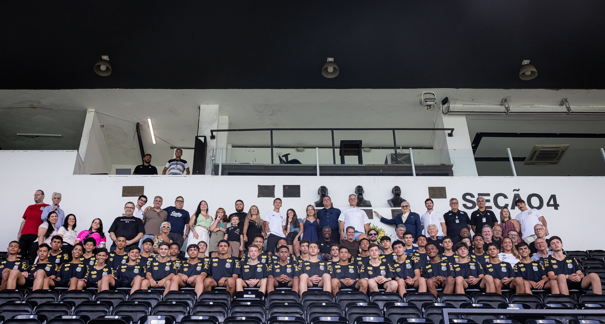 O Santos FC celebrou o Dia de Urbano Caldeira, na sexta-feira (09), em evento realizado em frente ao busto que fica no 4º andar, do estádio que leva o seu nome. A homenagem é uma tradição para um de seus patronos. Os outros dois são Modesto Roma e o Rei Pelé. Estavam presentes familiares, o vice-presidente, Fernando Bonavides, o membro do Comitê de Gestão, Dr. Colombo Barbosa, o assessor especial da presidência, Junior Bozzella, além dos Ídolos Eternos, conselheiros, atletas da equipe Sub-15, funcionários e representantes da Assophis. O historiador Guilherme Guarche foi o responsável por contar a história do homenageado. Veja aqui as fotos.