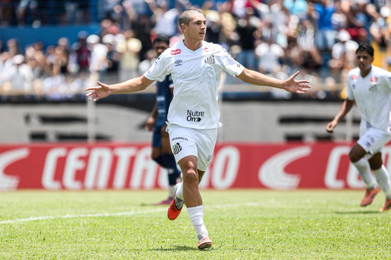 E aos 37 minutos, Benício virou a partida para o Santos. Vinícius Fabri foi derrubado próximo à área pelo canto esquerdo do ataque, e o árbitro marcou a falta. Benício foi para a cobrança e, com força, rasteiro e de canhota, marcou um lindo gol de falta para colocar o Peixe na frente.
