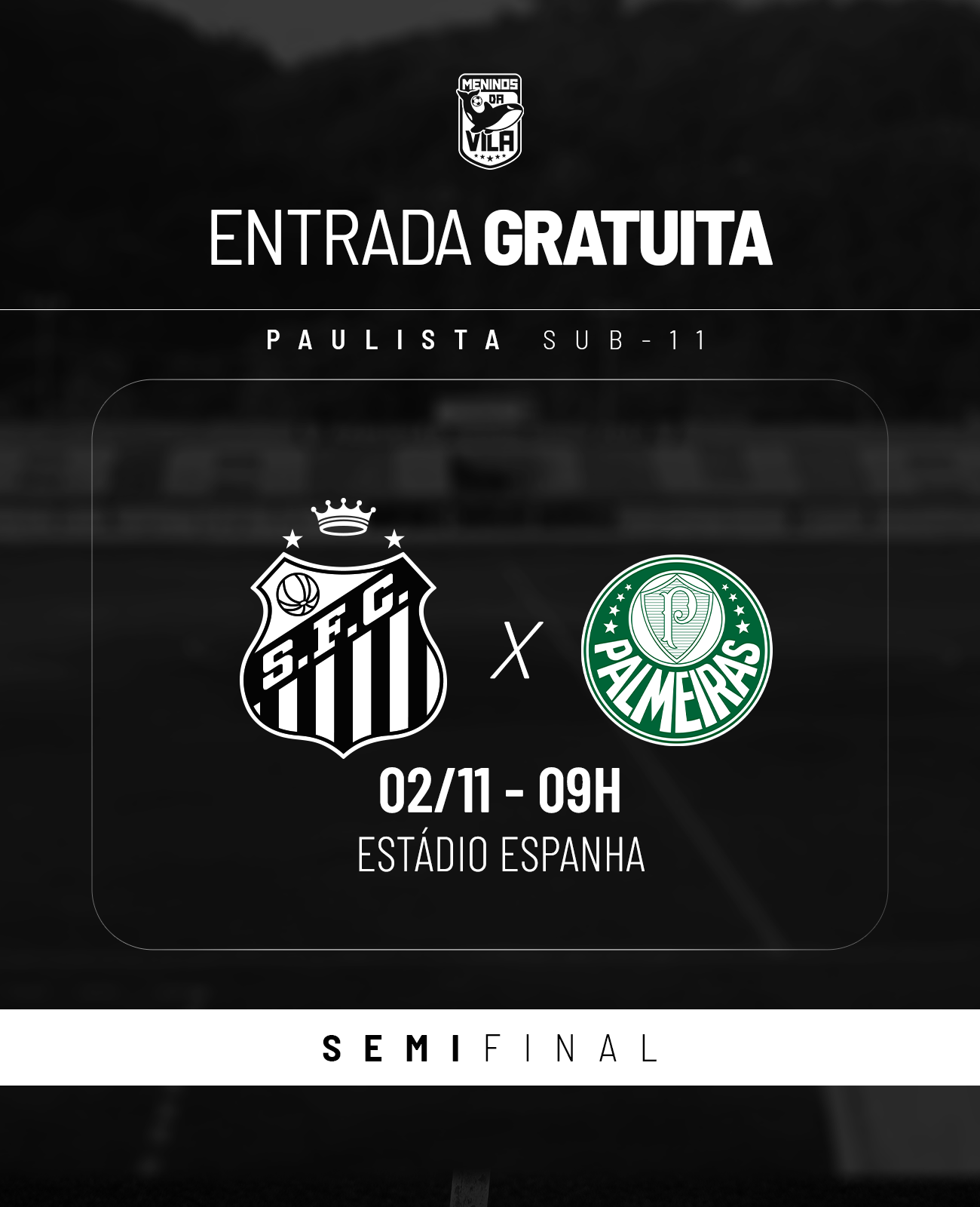 A equipe Sub-11 do Santos FC terá pela frente o clássico com o Palmeiras, válido pela partida de ida da semifinal do Campeonato Paulista da categoria. O jogo será realizada no próximo domingo (02), às 9 horas, no estádio Espanha, em Santos. A entrada será gratuita, com torcida única do Peixe. O portão 2 será aberto às 8 horas.